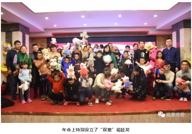 提到“工廠(chǎng)”二字,大家是否都會(huì )有種“冷冰冰”的感覺(jué)?但在“雙童”卻有一個(gè)特別的現象:每到周末或節假日,廠(chǎng)區里總會(huì )看到許多自由自在玩耍的孩子們;在年會(huì )上, 我們還特地給“雙童”寶貝們頒發(fā)了“萌娃獎”,瞧!“雙童”寶貝是不是非常多呢!