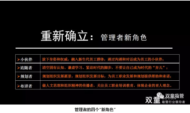當企業(yè)發(fā)展到一定時(shí)期,管理者一定要學(xué)會(huì )轉變自己的管理方式,從現場(chǎng)管理者轉變?yōu)槔碚摴芾碚?,成為員工精神導師,給員工做人文思想和組織精神的傳播,關(guān)注員工職業(yè)培訓教育,體現企業(yè)的育人理念,這恰恰是我們作為新時(shí)代管理者要去追求的。