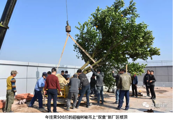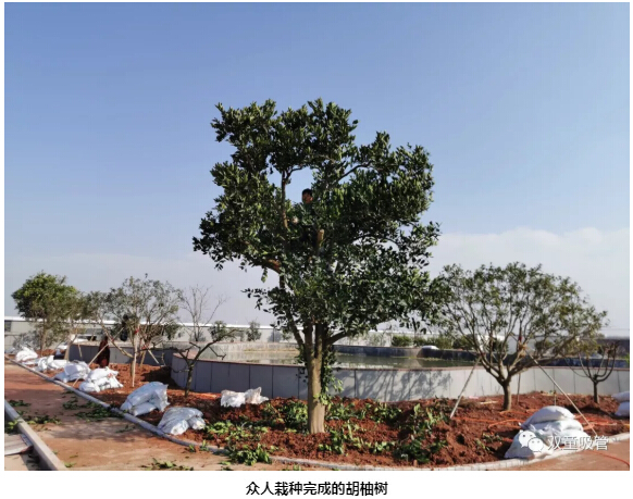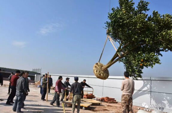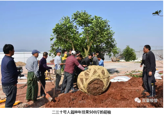 不過(guò),在栽種最后兩棵胡柚時(shí),可是召集了二三十位“大力士”在樓頂上接應,一同栽種。光是栽種這可胡柚樹(shù)就用了大半天時(shí)間。在這個(gè)過(guò)程中,連樓大大也親自上陣出力了!
