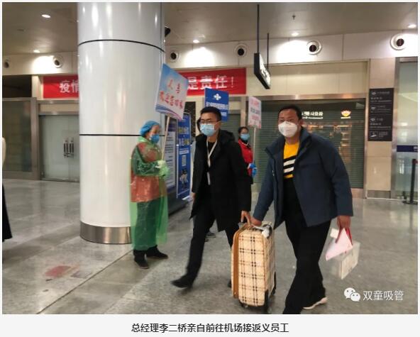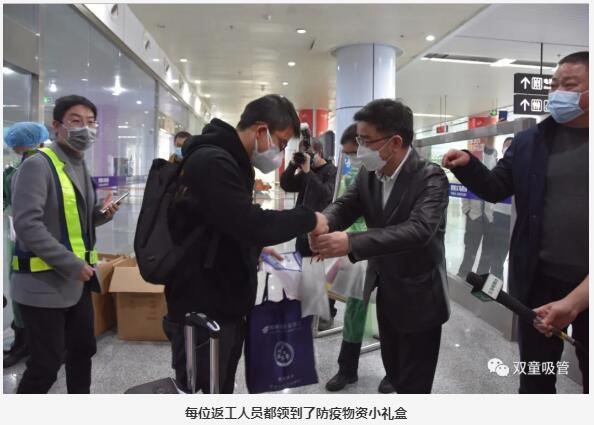 其中,“雙童”的5位陜西籍員工也乘坐此列免費航班返義,他們是“雙童”的技術(shù)人員、成型工、包裝工、司機等等,他們的到來(lái)將大大緩解“雙童”的復工壓力。