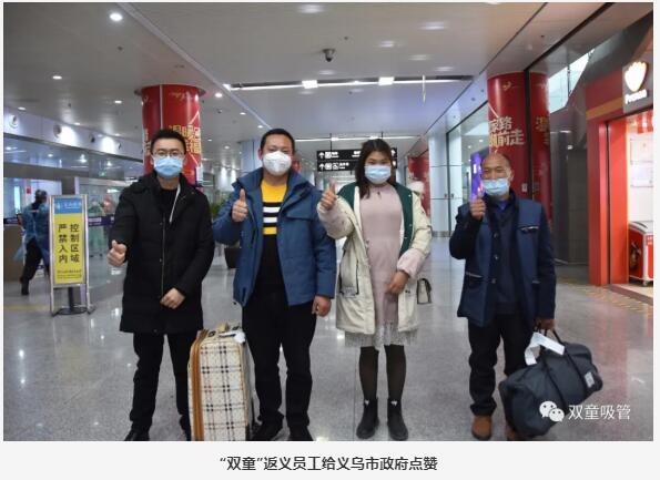 無(wú)論百里千里,義烏都會(huì )想辦法來(lái)接你!義烏市政府出錢(qián)、出力,全力幫助企業(yè)接回員工!這對雙童”來(lái)說(shuō),是企業(yè)復工復產(chǎn)經(jīng)濟恢復正常軌道的巨大支持。