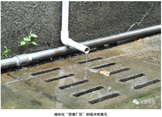 “雙童”廠(chǎng)區內有著(zhù)縱橫交錯的管道,這些管道“上天入地”,把一個(gè)個(gè)雨水坑和蓄水池有序連接,并延伸進(jìn)廠(chǎng)區車(chē)間和生活區的眾多角落。