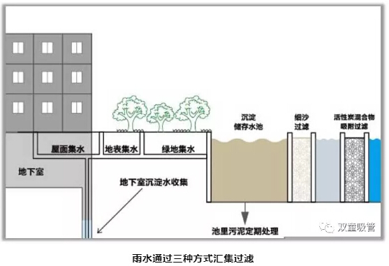 秘訣就是在屋頂、路面、綠化帶中做好雨水收集點(diǎn),用地下管道把它們連成一個(gè)整體,經(jīng)過(guò)科學(xué)過(guò)濾,匯集到一個(gè)占地700多平方米、總裝水容量近2000噸的雨水收集池。