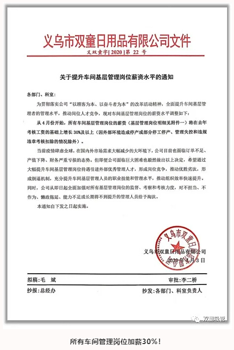 當前,全球疫情肆虐,經(jīng)濟環(huán)境急劇惡化,不少企業(yè)陷入經(jīng)營(yíng)困境,開(kāi)始了裁員降薪潮。在這樣的大背景下,2020年4月2日,“雙童”毅然推動(dòng)第二波改革活動(dòng),并將改革主題確定為“組織效率已成雙童生死劫”!次日,“雙童”發(fā)布了一份紅頭文件,明確提出給員工加薪且至少30%以上,引發(fā)了全廠(chǎng)沸騰!這背后究竟是何邏輯?有何深意?