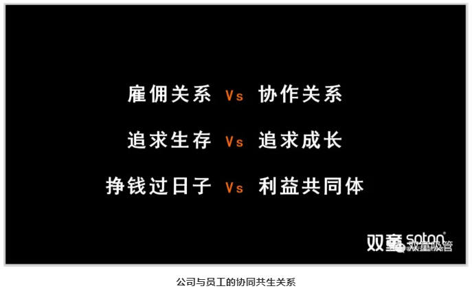通過(guò)以上轉變,從而推動(dòng)“雙童”形成“公司搭建平臺、員工努力創(chuàng )造,企業(yè)和員工共同成長(cháng)”的協(xié)同共生關(guān)系。