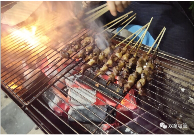 大伙手上的肉串還沒(méi)吃完,“燒烤小販”們已經(jīng)笑瞇瞇地把新烤好的肉串奉上了,吃都來(lái)不及,這是什么節奏!