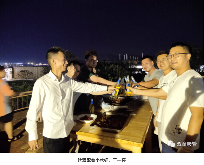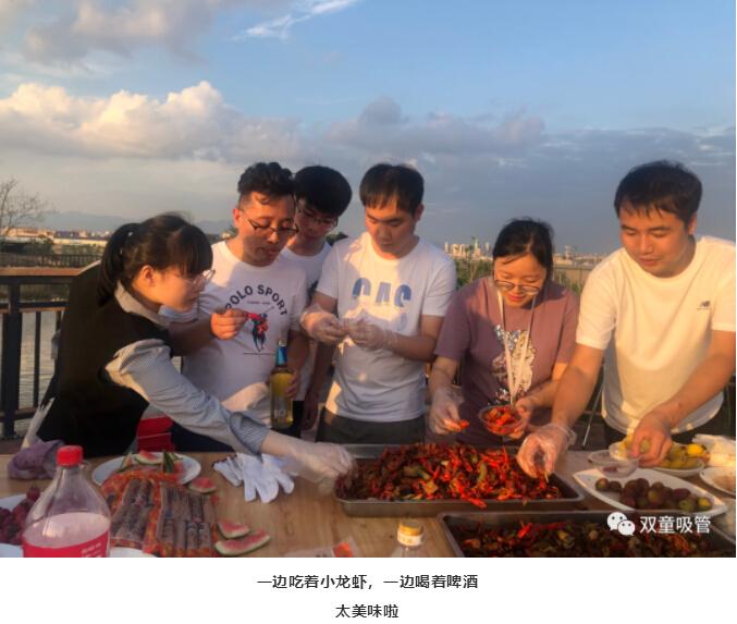 伴隨著(zhù)香味,同事們齊聚在燒烤平臺,大盆吃菜,大口喝酒。小龍蝦配著(zhù)啤酒,吃著(zhù)現釣現燒的魚(yú),真是美滋滋!