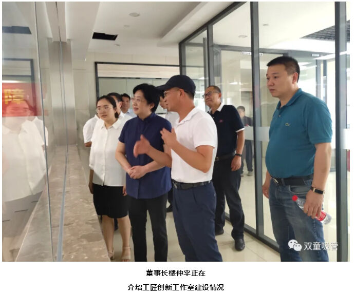 首先,張衛華副主席一行參觀(guān)了“雙童”新廠(chǎng)房車(chē)間及李二橋工匠創(chuàng )新工作室?!半p童”董事長(cháng)樓仲平向調研組介紹了工匠創(chuàng )新工作室的建設情況。