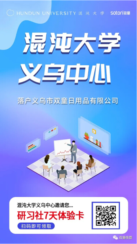 你將獲得一次三個(gè)小時(shí)的免費“雙童”游學(xué)活動(dòng),還包含一年三次的混沌大學(xué)義烏學(xué)習中心線(xiàn)下學(xué)習活動(dòng)。