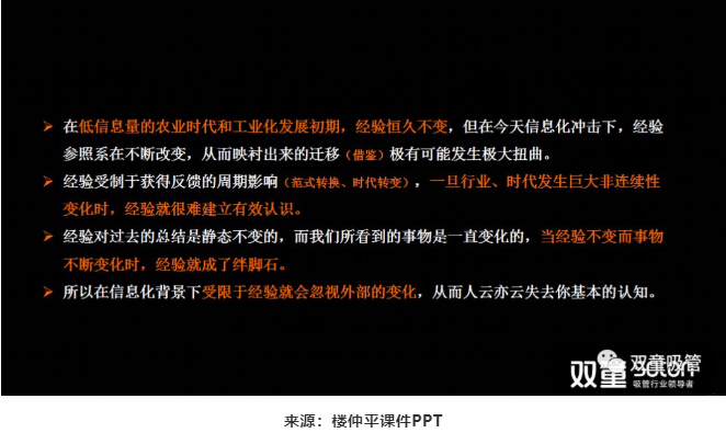 如果你在信息化社會(huì )還一直局限在以往的經(jīng)驗里面,就會(huì )忽視外部世界的變化,人云亦云,失去基本的認知,從而錯失了已經(jīng)發(fā)生的機會(huì )。