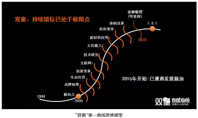 接著(zhù),我們再來(lái)看一下“雙童”的第一曲線(xiàn)思維模型: