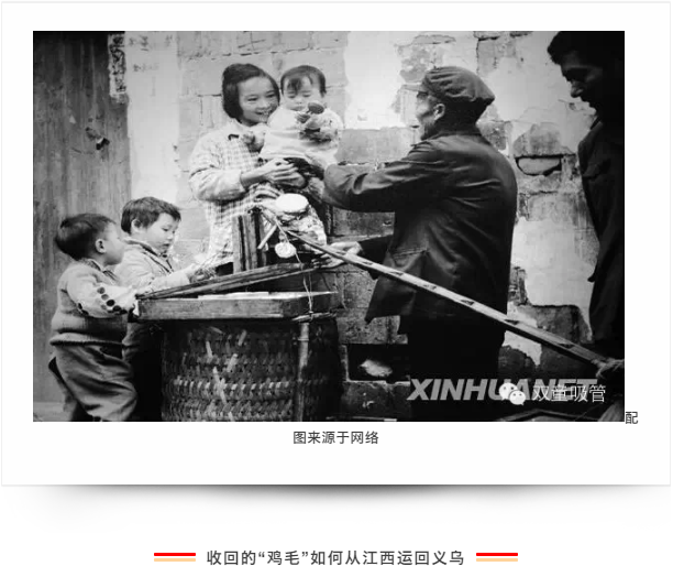 1979年開(kāi)始,我跟隨著(zhù)爸爸在江西弋陽(yáng)開(kāi)始挑貨郎擔,每個(gè)春節能換回來(lái)幾千斤的“雞毛”我們會(huì )把換回來(lái)的“雞毛”暫存在老表家里結束后再用板車(chē)拉到火車(chē)站托運回義烏。