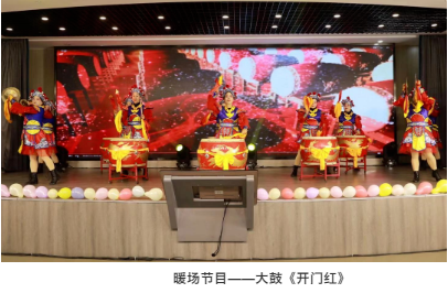 12月29日晚,隨著(zhù)夜幕的降臨,雙童二期新廠(chǎng)區六樓的大會(huì )堂里燈火璀璨、熱鬧非凡,不時(shí)傳來(lái)陣陣歡呼和掌聲。原來(lái)是義烏市北苑街道四季社區黨委慶元旦晚會(huì )正在進(jìn)行!由義烏市北苑街道四季社區主辦,義烏市雙童日用品有限公司有限公司協(xié)辦的“同心共融促和諧,凝心聚力再出發(fā)”元旦主題晚會(huì )在“雙童”大會(huì )堂精彩上演啦!隨著(zhù)兩位主持人的開(kāi)場(chǎng),精彩的晚會(huì )也拉開(kāi)了帷幕!在晚會(huì )開(kāi)始前,首先開(kāi)始的是由社區居民帶來(lái)的暖場(chǎng)節目——大鼓《開(kāi)門(mén)紅》。節目充分展現了四季社區的居民們對藝術(shù)的熱愛(ài),也贏(yíng)得了臺下幾百位“雙童人”的共鳴,贏(yíng)得了掌聲陣陣!