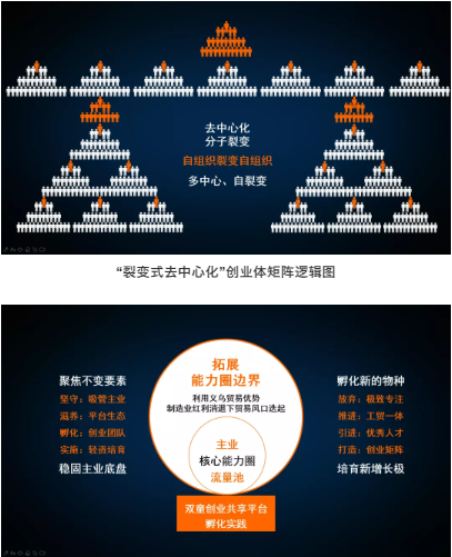 緊接著(zhù),樓仲平向大家指明了“雙童” 的組織形態(tài)發(fā)展方向:去中心化形成分子裂變!鼓勵創(chuàng )業(yè)體裂變自組織,形成自中心,從而形成“雙童”創(chuàng )業(yè)矩陣!