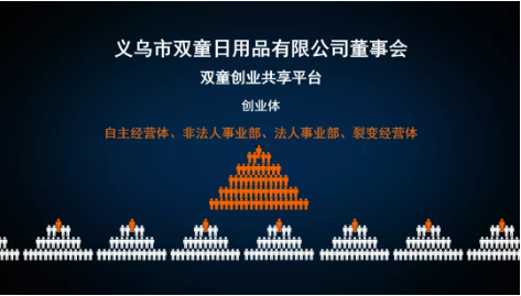 公司明確將所有“創(chuàng )業(yè)體”定義為“雙童創(chuàng )業(yè)共享平臺”的獨立經(jīng)營(yíng)體,明確所有“創(chuàng )業(yè)體”在業(yè)務(wù)運營(yíng)上保持相對獨立,明確所有“創(chuàng )業(yè)體”在業(yè)務(wù)邊界上可以大為拓寬,明確所有“創(chuàng )業(yè)體”在分配機制上實(shí)施利益共享,公司將依據各“創(chuàng )業(yè)體”的經(jīng)營(yíng)能力和業(yè)務(wù)屬性在組織架構上實(shí)施四級分層管理,從而在母公司生態(tài)資源孵化下往上進(jìn)化,不斷升級。