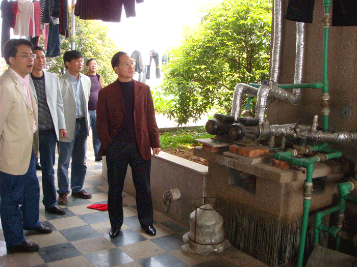 上圖:連小敏一行考察公司屋頂生產(chǎn)冷卻水循環(huán)系統