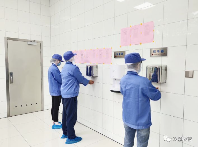 員工們洗手、烘干、消毒后正式進(jìn)入車(chē)間比賽
