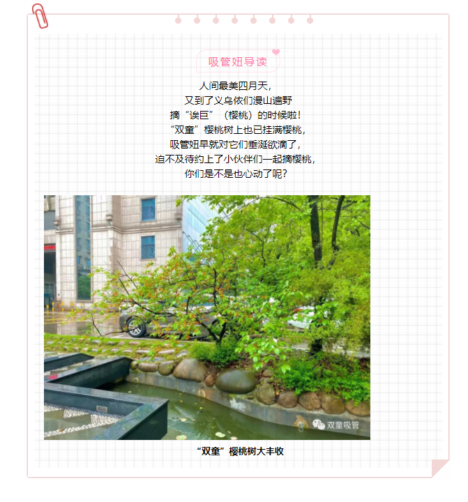 “雙童”摘櫻桃小分隊這就上線(xiàn)啦!新鮮的櫻桃從樹(shù)上摘下,直接丟進(jìn)嘴里,有的酸,有的甜,大家都忍不住吃了一顆又一顆,在“雙童”,實(shí)現櫻桃自由,就是這么簡(jiǎn)單!