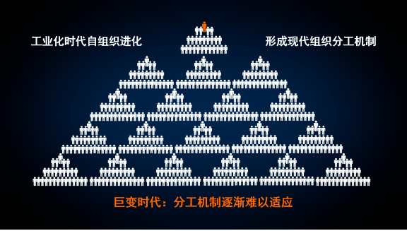 包括樓老師在內的雙童核心管理層后來(lái)意識到從2016年開(kāi)始,外部環(huán)境的動(dòng)蕩性持續加劇,數字化信息時(shí)代的到來(lái)和新生代員工所帶來(lái)的種種“新挑戰”,讓雙童意識到延續“過(guò)去的邏輯”已然失效,僅靠專(zhuān)注和堅持已難以突破巨變時(shí)代的持續挑戰,原本垂直層級管控(權威型)的傳統組織方式已不足以激發(fā)核心員工和知識型員工的工作活力、自主提升和價(jià)值創(chuàng )造。從而堅定推動(dòng)變革、打破經(jīng)營(yíng)慣性,逐漸促使了雙童進(jìn)行了“結構性的組織創(chuàng )新”。