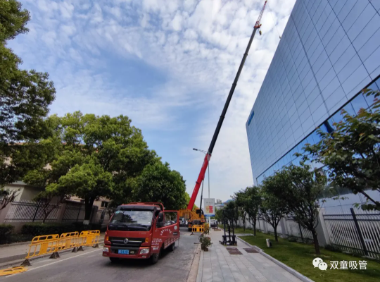年掛果300斤的胡柚樹(shù)被吊上“雙童”二期廠(chǎng)區樓頂
