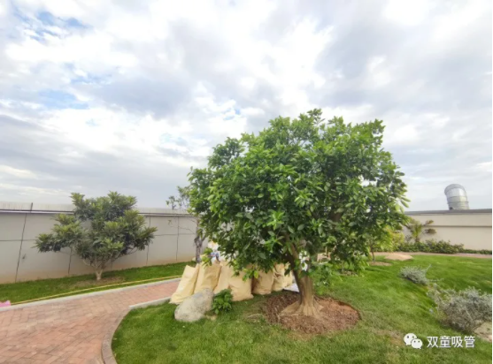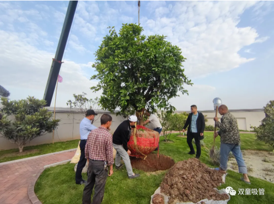 其實(shí),由于果樹(shù)體積大,又是“重量級”的。因此,這些果樹(shù)都是通過(guò)吊機送上樓頂的!