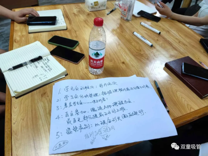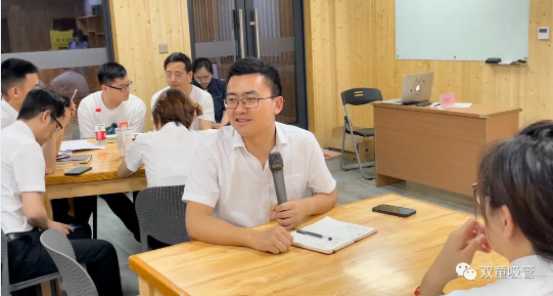 樓仲平的分享,引發(fā)了大家的共鳴和一致認可。因此,雙童的小伙伴們針對五個(gè)提問(wèn),分組對學(xué)習會(huì )機制進(jìn)行了分析討論(自營(yíng)體長(cháng)組,生產(chǎn)中高層組,品管研發(fā)組,行政組,銷(xiāo)售人員組)。