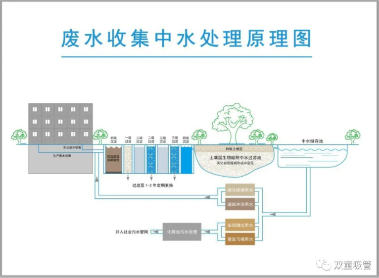 處理過(guò)后的廢水可以 用于廠(chǎng)區地面、道路沖洗用水 幾百個(gè)寢室的抽水馬桶不耗費一噸自來(lái)水