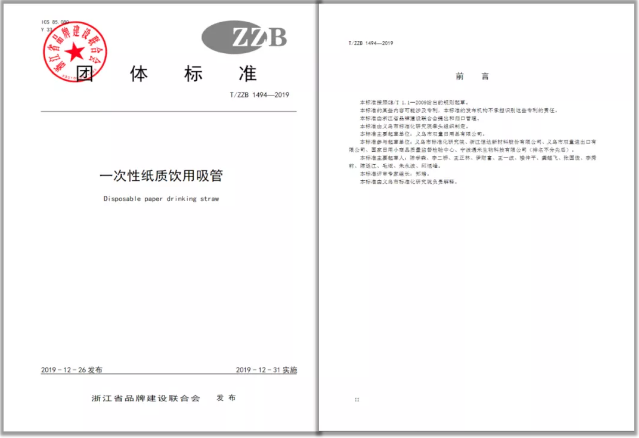 《一次性紙質(zhì)飲用吸管》浙江制造團體標準