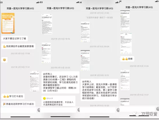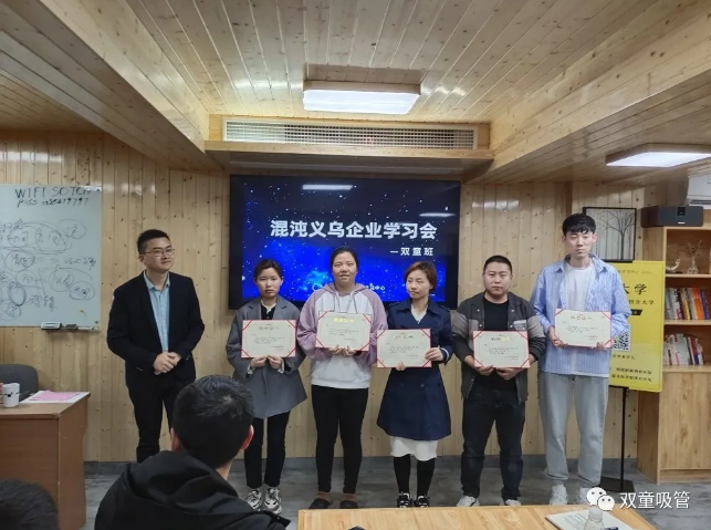 2021年4月1日,“雙童”攜手混沌大學(xué)義烏中心,共同創(chuàng )建了員工學(xué)習會(huì )新形式讓150位行政員工全部上大學(xué)。作為團報企業(yè),混沌義烏會(huì )組建線(xiàn)上學(xué)習群,每月會(huì )在群內發(fā)布學(xué)習任務(wù),督促同學(xué)們學(xué)習打卡,并和企業(yè)學(xué)習領(lǐng)導小組負責人共同評選出優(yōu)秀作業(yè),并給予學(xué)分獎勵。