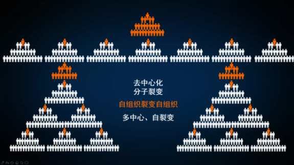 樓老師給大家提出了一個(gè)新的方案:由自組織分裂出自組織—實(shí)現子代事業(yè)部的分子裂變。鼓勵創(chuàng )業(yè)體自身裂變出創(chuàng )業(yè)體事業(yè)部控股的創(chuàng )業(yè)項目,形成新的“自組織集群”,形成各個(gè)創(chuàng )業(yè)體裂變后的自中心和多中心,從而形成雙童多層架構的創(chuàng )業(yè)矩陣!