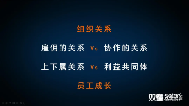 包括樓老師在內的雙童核心管理層后來(lái)意識到,從2016年開(kāi)始,外部環(huán)境的動(dòng)蕩性持續加劇,數字化信息時(shí)代的到來(lái)和新生代員工所帶來(lái)的種種“新挑戰”,讓雙童意識到延續“過(guò)去的邏輯”已然失效,僅靠專(zhuān)注和堅持已難以突破巨變時(shí)代的持續挑戰,原本垂直層級管控(權威型)的傳統組織方式已不足以激發(fā)核心員工和知識型員工的工作活力、自主提升和價(jià)值創(chuàng )造。從而堅定推動(dòng)變革、打破經(jīng)營(yíng)慣性,逐漸促使了雙童進(jìn)行了“結構性的組織創(chuàng )新”。