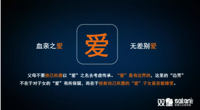 雙童在組織變革后明確形成了“組織關(guān)系三原則”,很多人不理解樓老師在十年前做出的“子女不接班”這樣的傳承安排,樓老師引導大家在傳承問(wèn)題上沒(méi)有絕對的答案,雙童不讓子女接班并非我大公無(wú)私,而是運用經(jīng)濟學(xué)的“比較優(yōu)勢”原理充分酌量后選擇的結果,是綜合考慮了子女的喜好、擅長(cháng)、愿景后而得出的合理安排。當然期間隱含的信號卻發(fā)出了巨大的想象空間。大家想想,在一家經(jīng)營(yíng)了近二十年的傳統制造企業(yè)里面:
