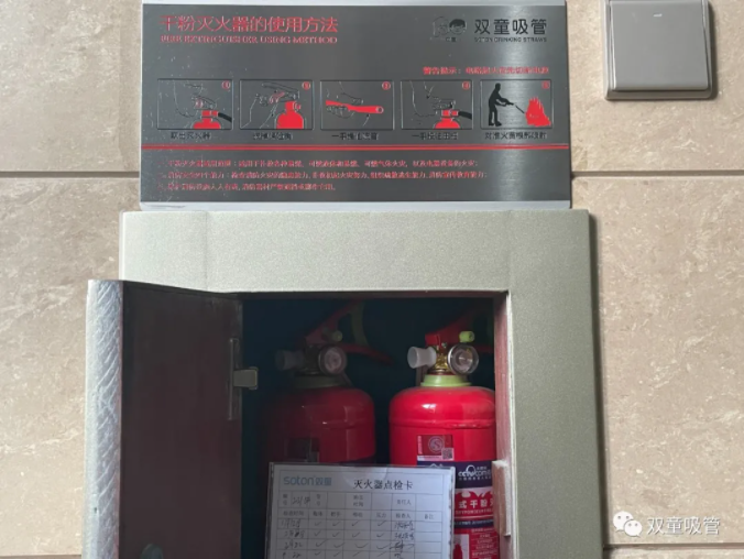 “雙童”隨處可見(jiàn)的消防器材和宣傳物料