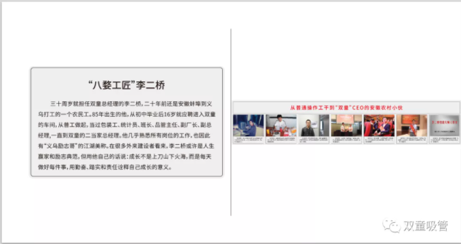 人本經(jīng)營(yíng)也就是要把人當成第一資產(chǎn),惟有正確對待人的時(shí)候,才能正確經(jīng)營(yíng)企業(yè)?!半p童”在這個(gè)過(guò)程中重視人的培養,并由此培養出更多的“工匠”。他們在不同崗位上表現出優(yōu)異的品質(zhì),默默貢獻,是企業(yè)發(fā)展強有力的推動(dòng)力。