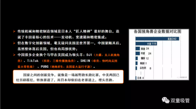 今天這個(gè)時(shí)代需要有選擇的去理解工匠精神。日本在全球機械制造領(lǐng)域得益于半個(gè)多世紀的匠人精神,從而形成核心的競爭力。但是在數字化創(chuàng )新領(lǐng)域,像阿里、抖音都是獨角獸數字化企業(yè)顯現出了他們的優(yōu)勢。