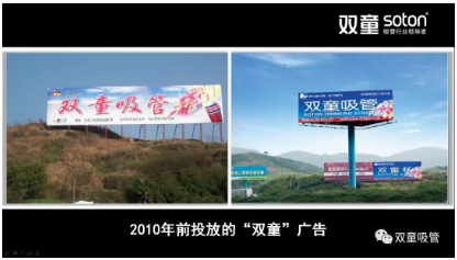 在注冊商標之后,樓仲平意識到了品牌的重要性。于是,“雙童”開(kāi)始了第一次的戶(hù)外廣告投放,在義烏周邊、市場(chǎng)顯眼位置等地推廣和投放廣告。當時(shí)投入到戶(hù)外廣告上的費用每年基本上都達到幾百萬(wàn),這對于傳統制造型企業(yè)來(lái)說(shuō),是一筆不小的支出。