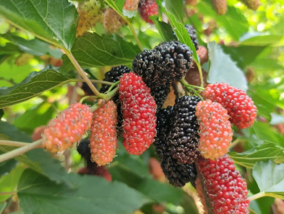 紫紅的桑葚果實(shí),吃起來(lái)酸酸甜甜