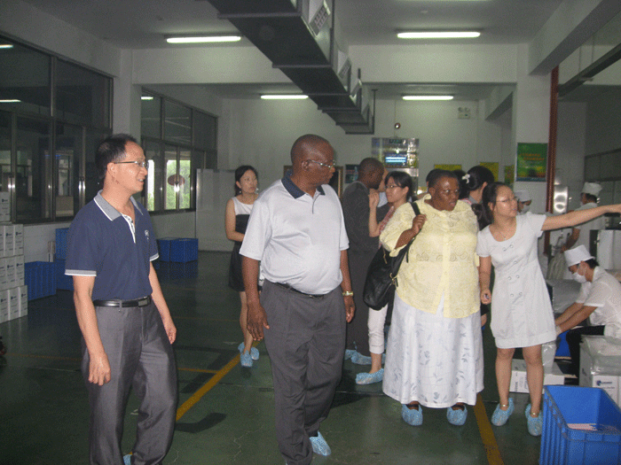 2009年8月1日上午,浙江省人民政府外事辦公室(歐洲非洲處)余亦平處長(cháng)陪同南部非洲內陸國家博茨瓦納首都哈博羅內市的市長(cháng)(莫泰)、秘書(shū)長(cháng)(賽拉黑)和市政委員會(huì )首席經(jīng)濟官員(茨奧斯瓦內)一行來(lái)公司參觀(guān)考察,公司董事長(cháng)樓仲平親臨接待。
