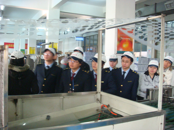 2009年12月22日—23日,義烏市檢驗檢疫局30多名新聘工作人員分批到我司參觀(guān)考察,公司辦公室主任劉魚(yú)海和質(zhì)檢部主任李二橋出席接待并陪同考察,分別走訪(fǎng)了公司樣品展示廳、各車(chē)間生產(chǎn)現場(chǎng)、屋頂空中花園;并通過(guò)觀(guān)看多媒體演示片和聽(tīng)取口述介紹,對雙童公司成立歷史和產(chǎn)品生產(chǎn)各工藝流程有了較為詳細的了解。