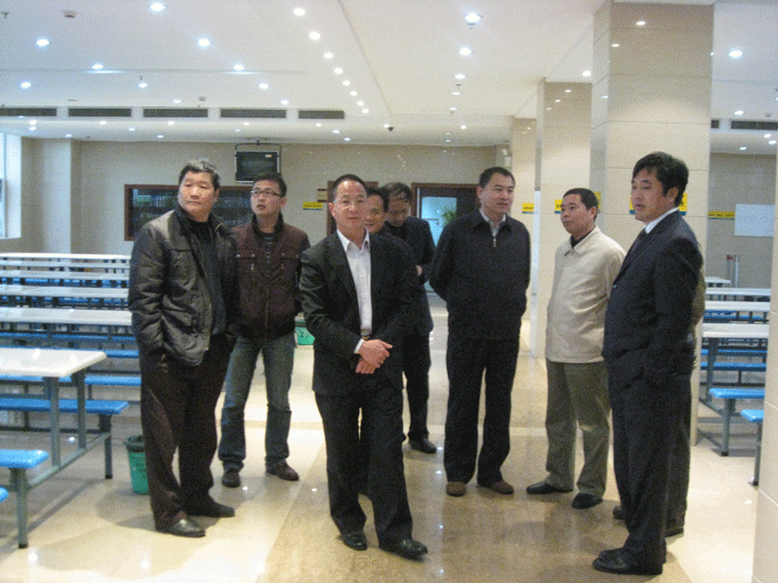 上圖:董事長(cháng)樓仲平陪同調研組參觀(guān)公司職工餐廳