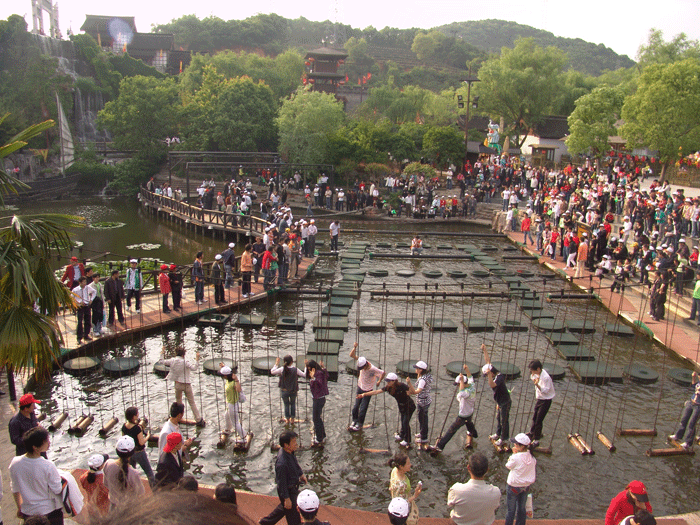 上圖:雙童旅游團在宋城游玩水上娛樂(lè )項目