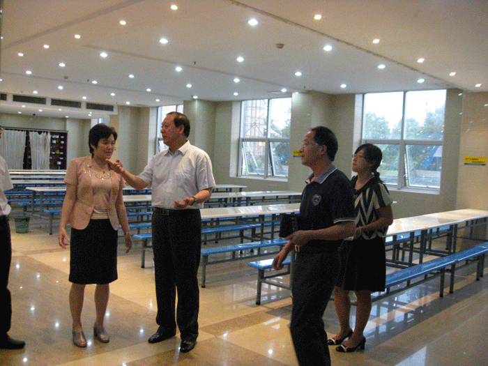 上圖:董事長(cháng)樓仲平陪同參觀(guān)公司職工餐廳