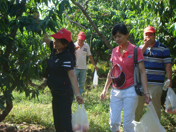 上圖:雙童旅游團在十三陵景區的水果農莊摘水蜜桃