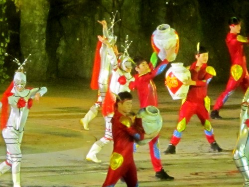 晚上6點(diǎn)半,夢(mèng)幻谷最為著(zhù)名的歌舞表演《夢(mèng)幻太極》開(kāi)始了,表演場(chǎng)館內人頭攢動(dòng)、座無(wú)虛席。隨著(zhù)一聲悠長(cháng)的音樂(lè ),如夢(mèng)似幻的舞臺上,各式各樣的美麗舞蹈輪番上演,一年四季的場(chǎng)景接連變換,我們的座位席上不斷爆發(fā)出陣陣熱烈的掌聲。