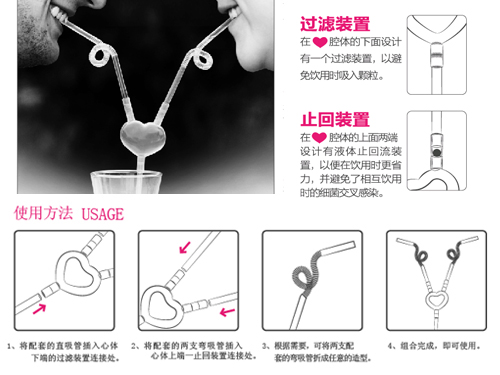 由雙童吸管全新獨創(chuàng )設計的全球專(zhuān)利產(chǎn)品“愛(ài)心吸管”: