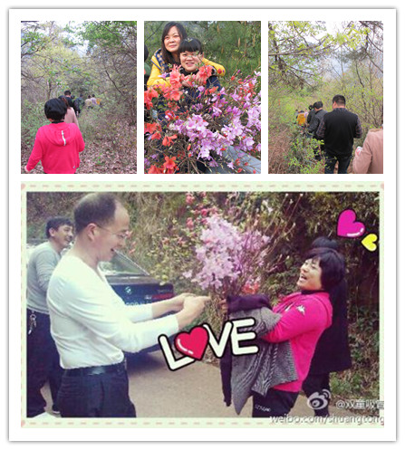 我們兵分兩路進(jìn)行了爬山比賽,當雙童吸管的第一支登山小分隊已經(jīng)成功抵達目的地時(shí),由當家人樓總帶隊的第二支小分隊還在路上呢!當樓總大汗淋漓地到達終點(diǎn)時(shí),身上只剩下一件白色的薄薄長(cháng)袖。他到達終點(diǎn)的第一件事就是把路上采來(lái)的一大束花送給了他心中最美的美女——樓夫人啦!