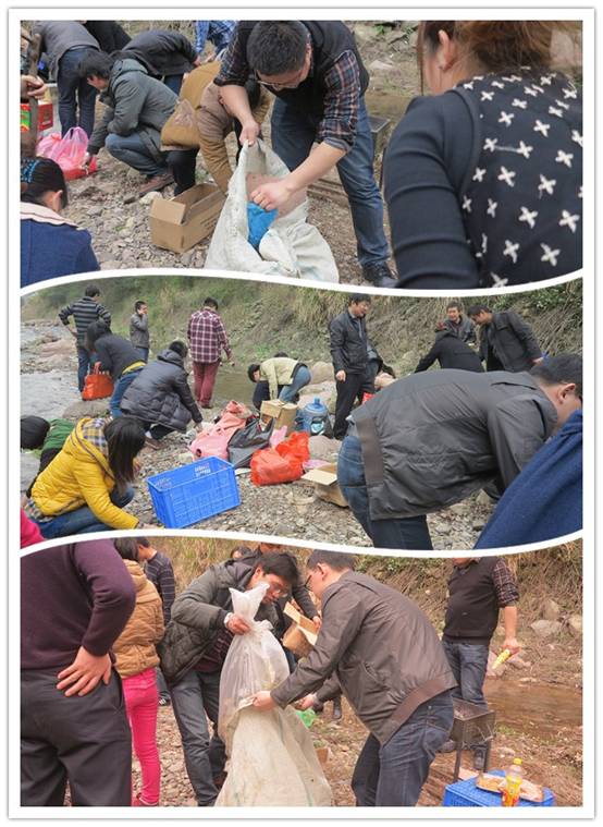 大家吃飽喝足了,還要記住一件事情:玩得再開(kāi)心,環(huán)保不能忘!樓總來(lái)之前就特地提醒我們了,不能亂扔垃圾,污染環(huán)境!我們事先就把垃圾都扔進(jìn)了準備好的垃圾袋,再把地上的一些遺漏垃圾給撿一撿,不出五分鐘,小溪沙洲又恢復了原樣。