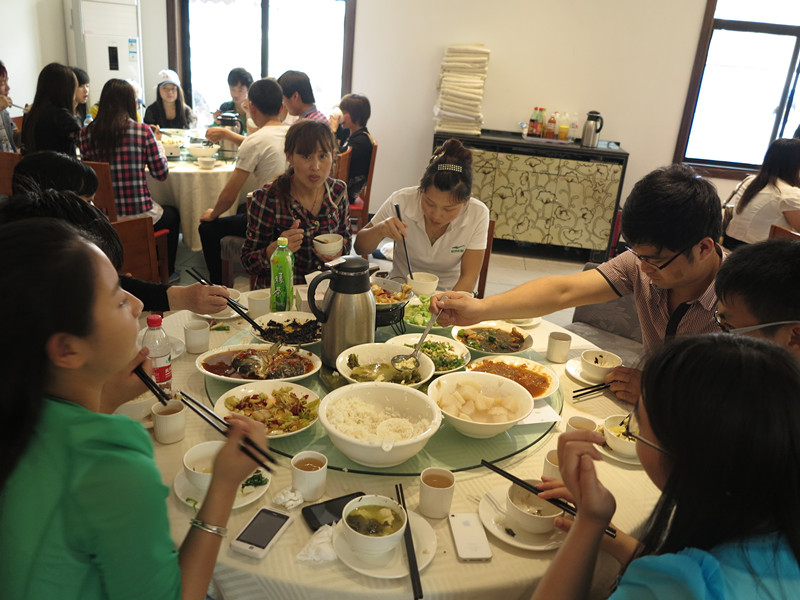 下了龍船,接下來(lái)就是自由活動(dòng)時(shí)間啦!西湖美,心情美,大家隨便往哪個(gè)方向走,都覺(jué)得是好風(fēng)景??斓匠灾酗埖臅r(shí)間啦,看,隊長(cháng)在路口處揮著(zhù)雙童的旗幟,在召喚著(zhù)大家趕緊上車(chē),一頓豐盛的午餐正等待著(zhù)咱們呢!魚(yú)蝦肉菜俱全,大家可別吃太飽了,不然去了宋城玩不動(dòng)了可得不償失哦!