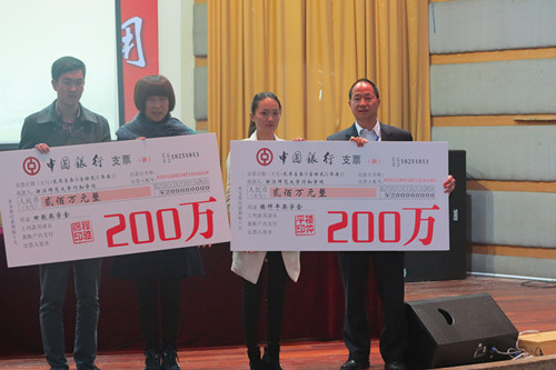 同日,身為浙師大兼職教授的樓總也以個(gè)人的名義在浙江師范大學(xué)成立了一個(gè)“樓仲平基金會(huì )”,每年規劃獎學(xué)金去幫助學(xué)校里有需要的學(xué)生,鼓勵他們更好地學(xué)習和完成學(xué)業(yè)。樓總也希望通過(guò)校企合作的方式讓一部分學(xué)生把我公司作為學(xué)生的實(shí)習基地。