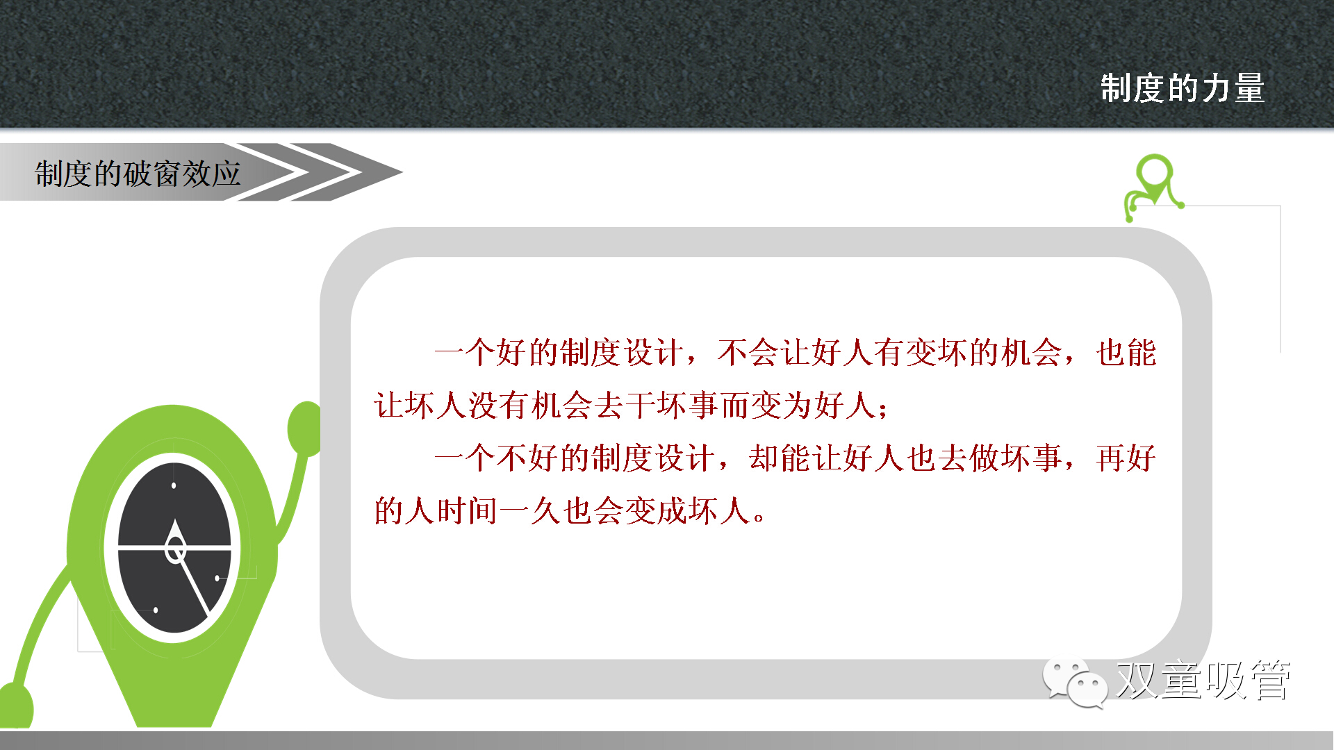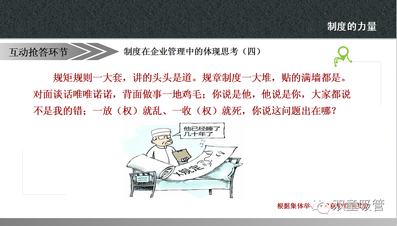 當然啦,這樣的案例,當家人準備了許多,讓大家在快樂(lè )中學(xué)習到了制度的魅力。以前吸管妞總是有一種誤解,覺(jué)得制度就是上級用來(lái)管理下級的一種方式。通過(guò)昨天的課程終于讓妞明白了,原來(lái)制度不僅僅是有利于上級管理,更有利于雙方的權利得到保障,讓公司的流程化管理更加準確高效!下面,吸管妞就把干貨放上來(lái),大家可要好好看哦!